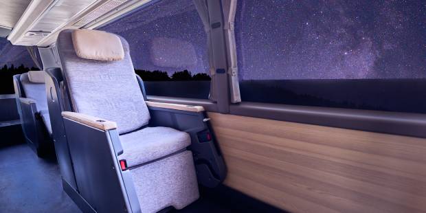 Chaque siège est équipé d’une prise électrique, d’une table, de lampes de lecture individuelles ainsi que d’un accès à Internet. Les passagers disposeront aussi d’oreillers, de couvertures et d’un petit compartiment pour ranger leurs affaires personnelles.